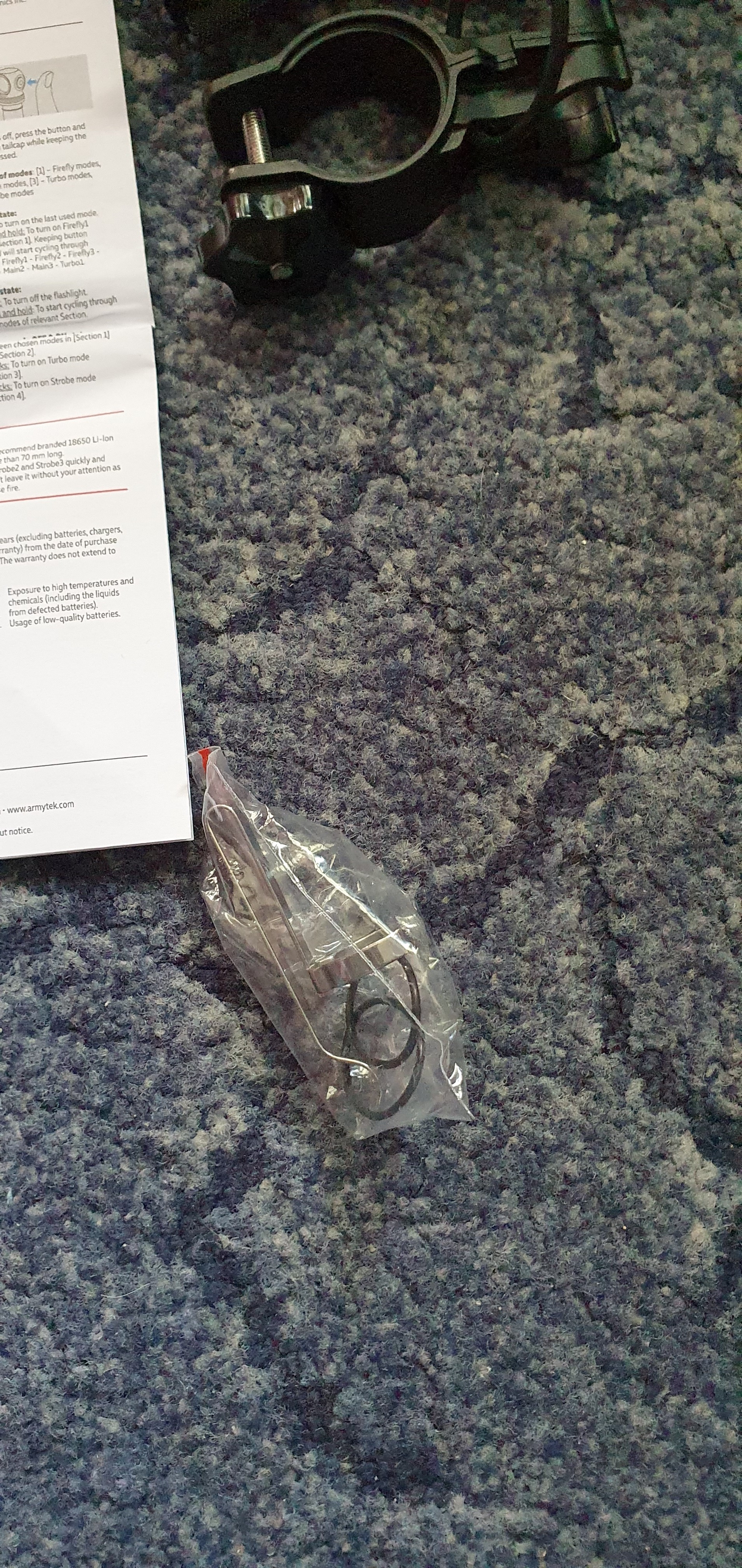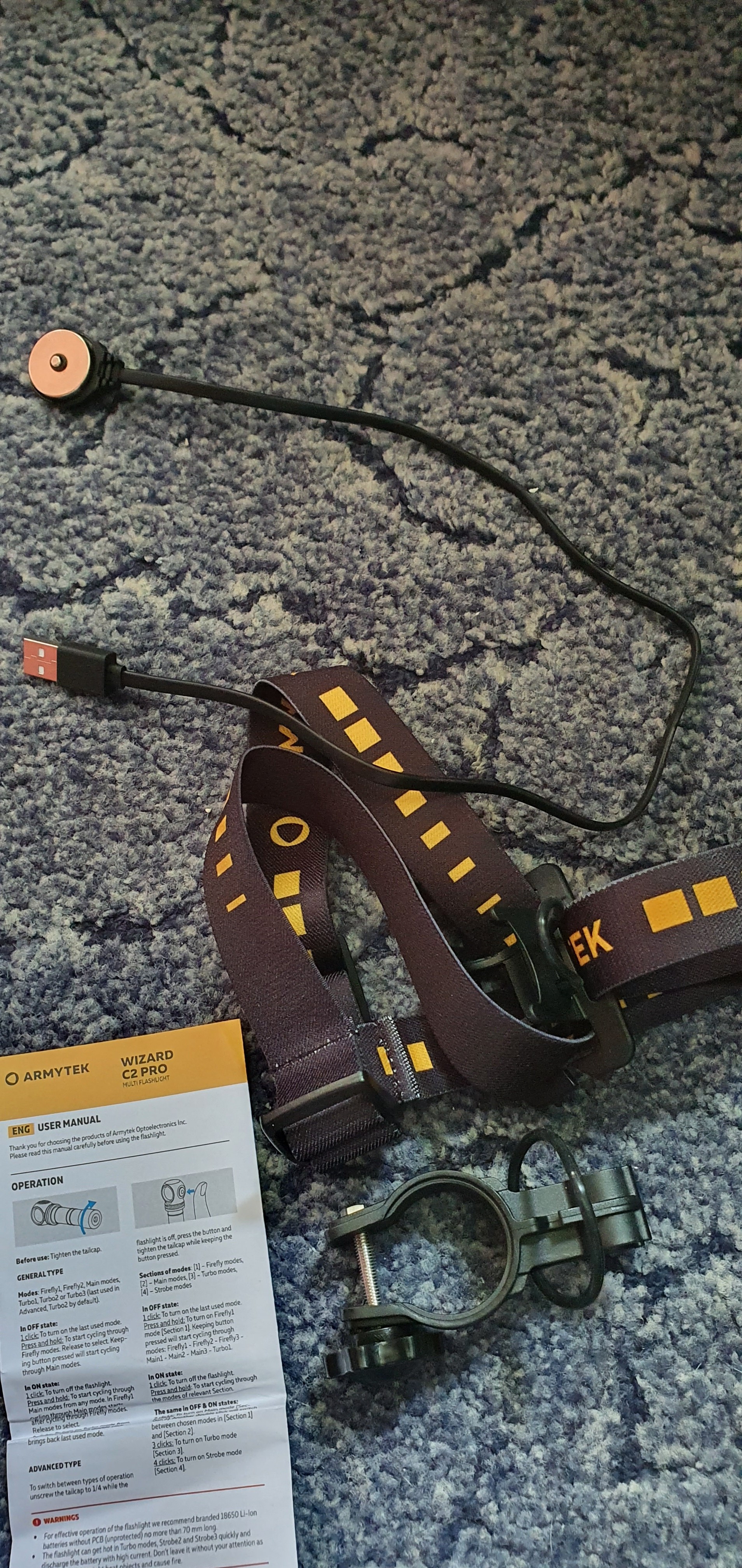 - Аккумулятор 18650 L-lon 3500 мАч - 1 шт; Магнитное USB зарядное устройство - 1 шт; Клипса - 1 шт; Налобное крепление - 1 шт; Велосипедное крепление ABM-01